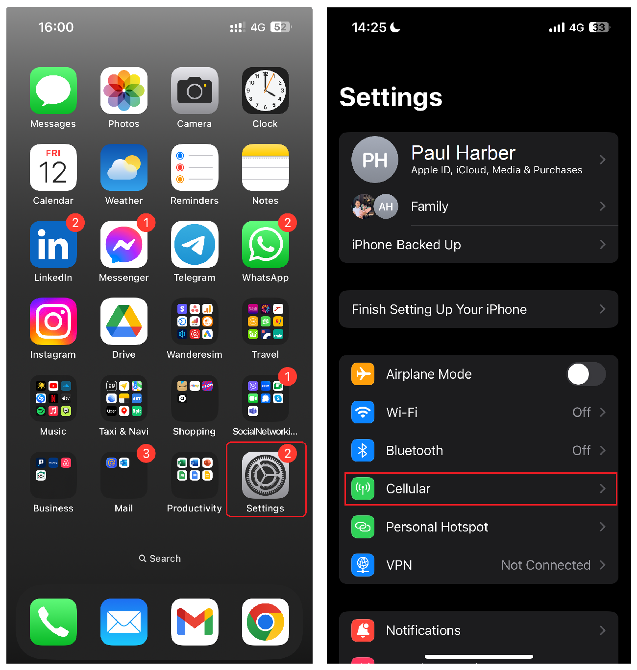 Step 19: Open “Settings” on your iPhone and select “Cellular / Mobile”.
