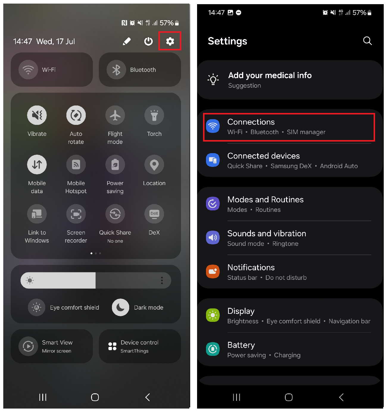 Step 8: On your device, SWIPE DOWN and TAP "Settings".