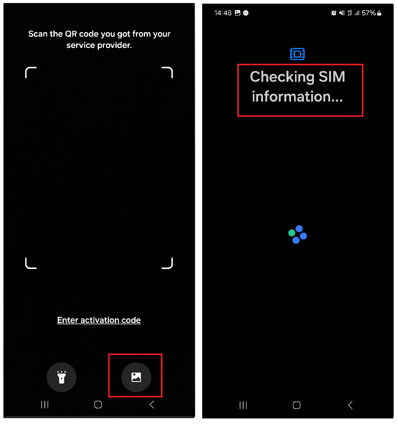Step 7: You will see the QR Code (for QR installation) and/or the SM-DP+ Address & Activation code (for Manual installation). Take a screenshot of the QR Code.