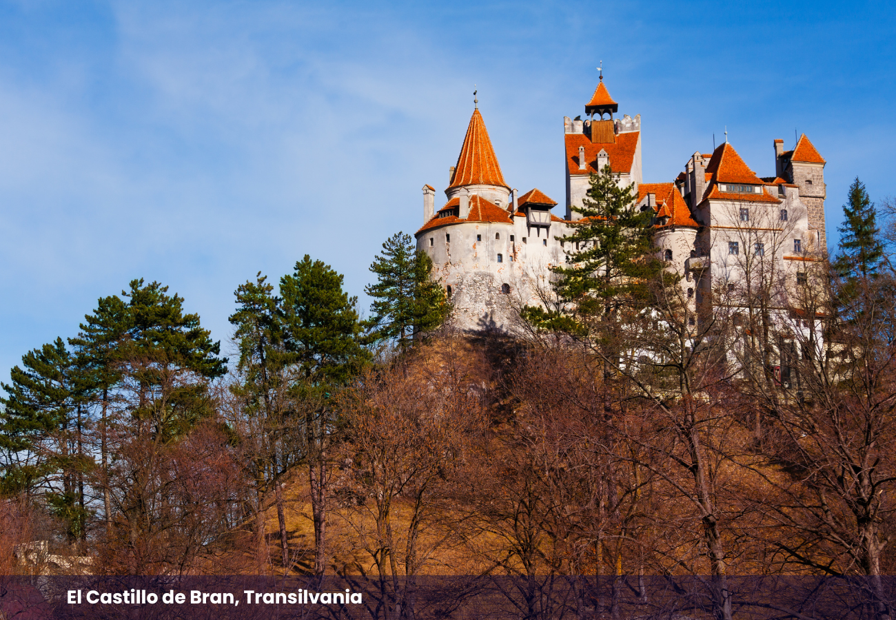 Visita el Castillo de Bran, conocido como el "Castillo de Drácula", rodeado de follaje otoñal.