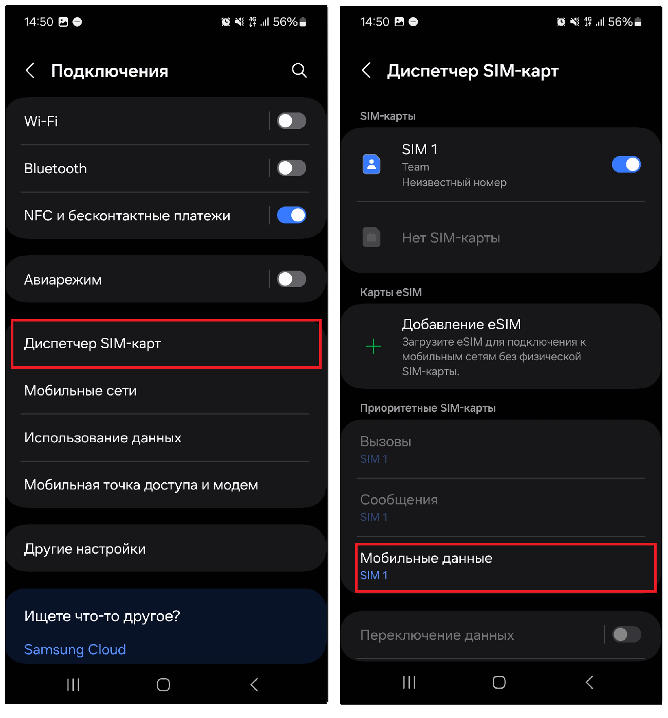 Шаг 19: Открой "Настройки", перейди в "Подключения" и затем в "Управление SIM-картами".