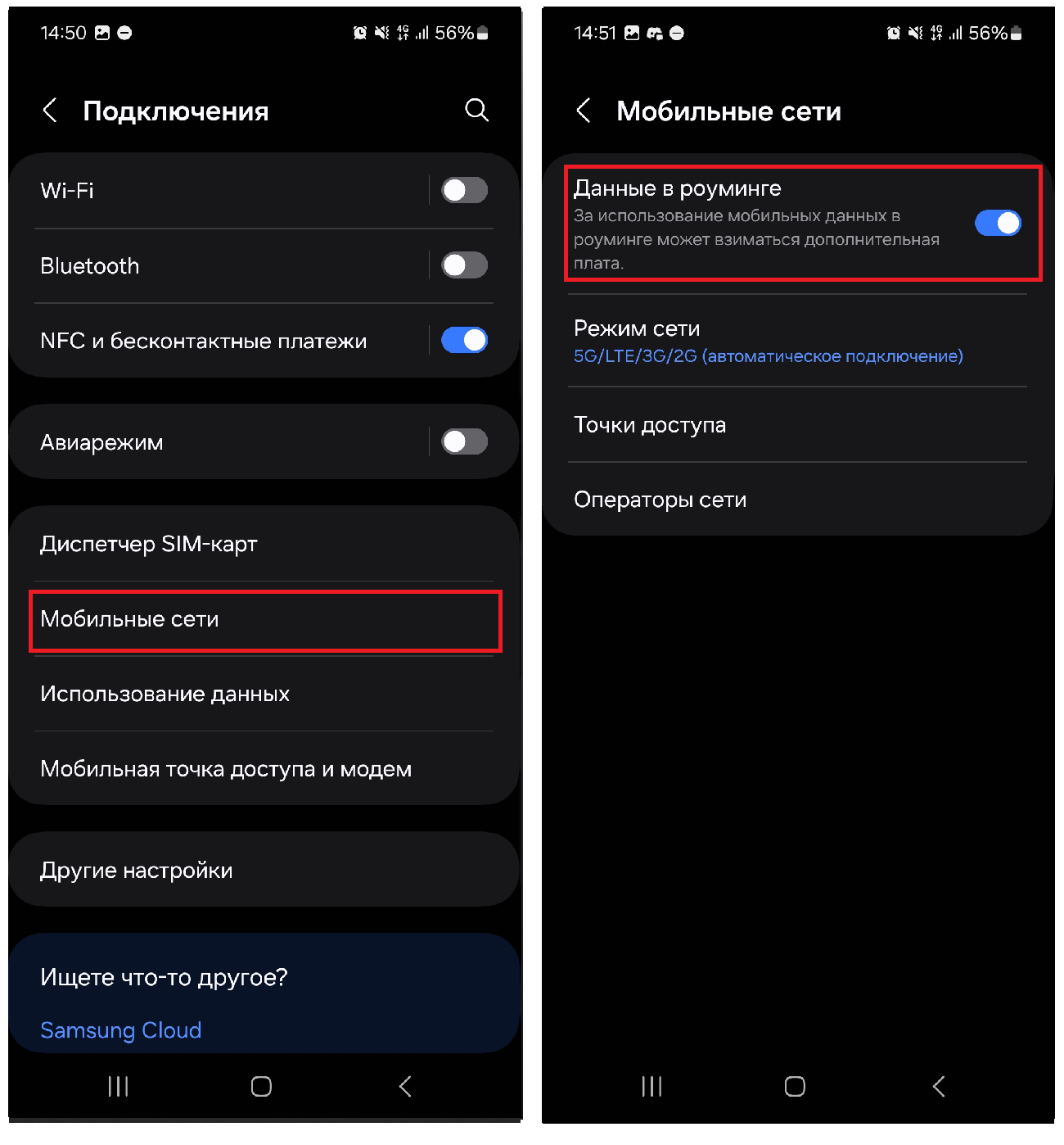 Шаг 22: Открой "Подключения" -> "Мобильные сети" на устройстве.